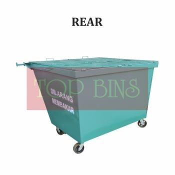 Description: 1500L Metal Leach Bin 4-Wheel c/w Cover
