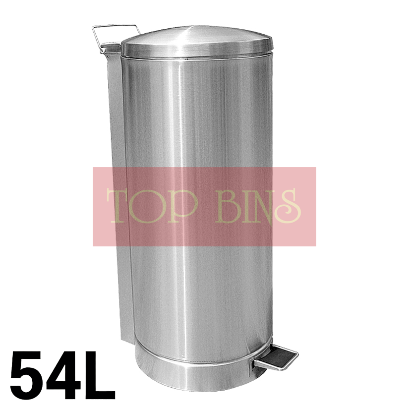 Description: Premium Stainless Steel Pedal Bin (Round) c/w Dome Lid – 54L