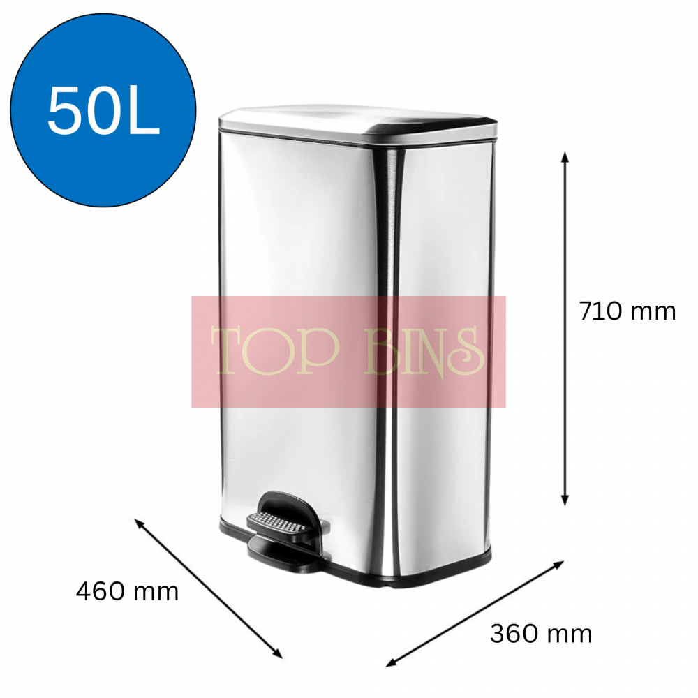 Description: Stainless Steel Pedal Bin (Rectangular) – 50L