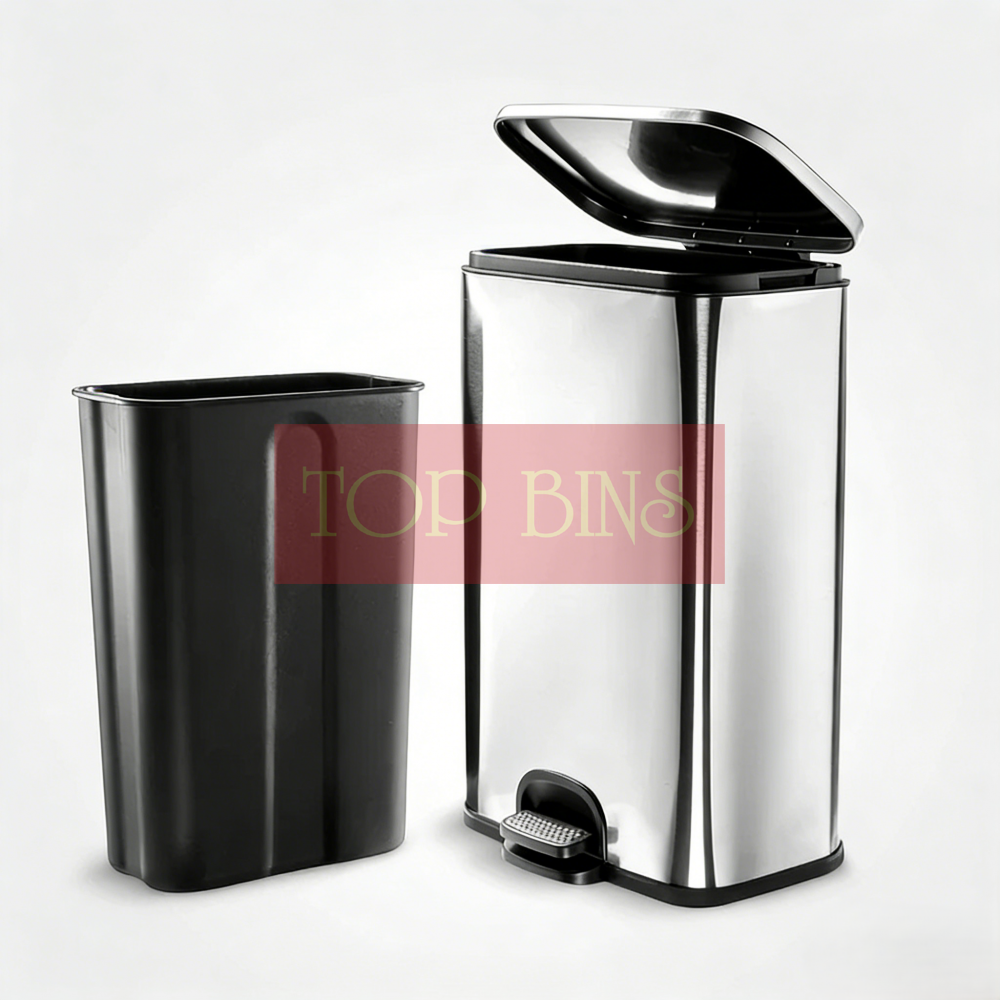 Upgrade your waste management with the Stainless Steel Pedal Bin (Rectangular) – 50L. Its space-saving rectangular design fits flush against walls, while the soft-close lid ensures silent, odour-controlling operation. The sturdy foot pedal enables hygienic, hands-free opening—perfect for kitchens, clinics, hospitals, and offices. Crafted from durable SUS201 stainless steel with a removable PP inner bin, this bin resists rust and simplifies cleaning. With a spacious 50L capacity, you’ll empty it less often. Polish weekly to maintain its shine. Ideal for hygiene-sensitive areas where touchless operation is essential.