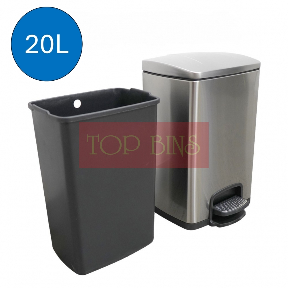 Description: Stainless Steel Pedal Bin (Square) – 20L